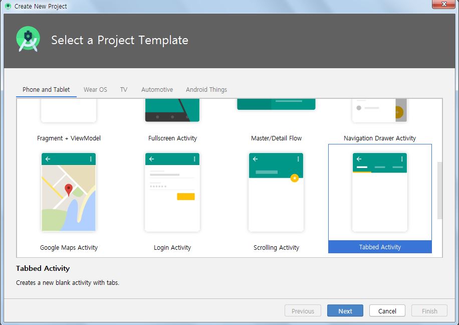 탭이 설정되어 있는 일정 관리 어플을 만들고 싶기 때문에 비슷한 템플릿을 설정해준다.