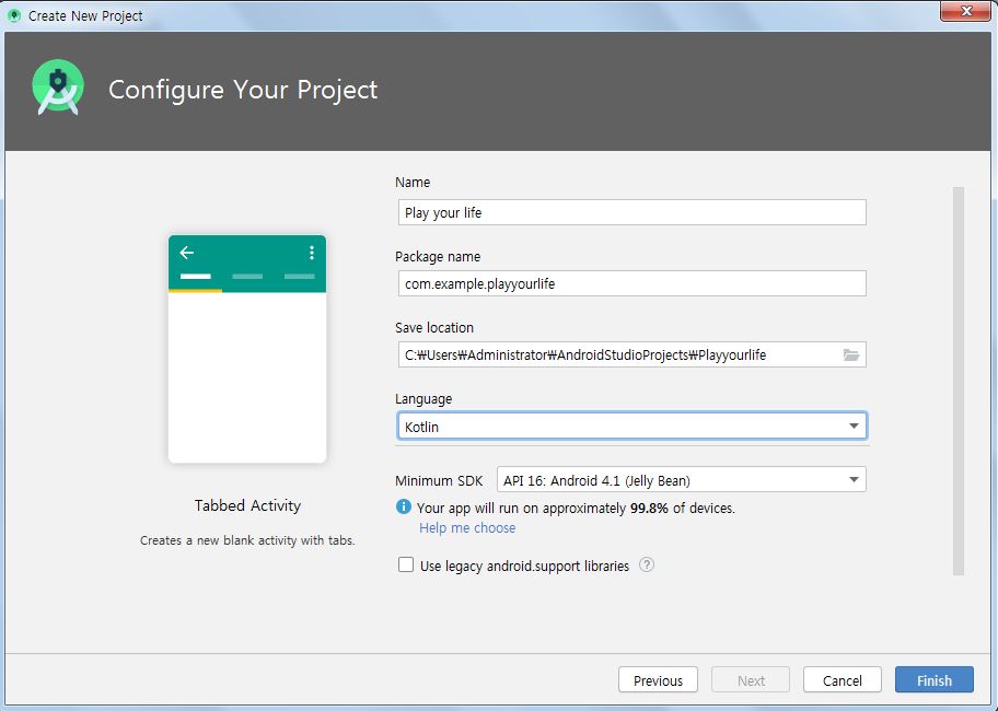 Language에 Kotlin이라는 언어와 Java 라는 언어 둘 중 하나를 선택해야 한다.