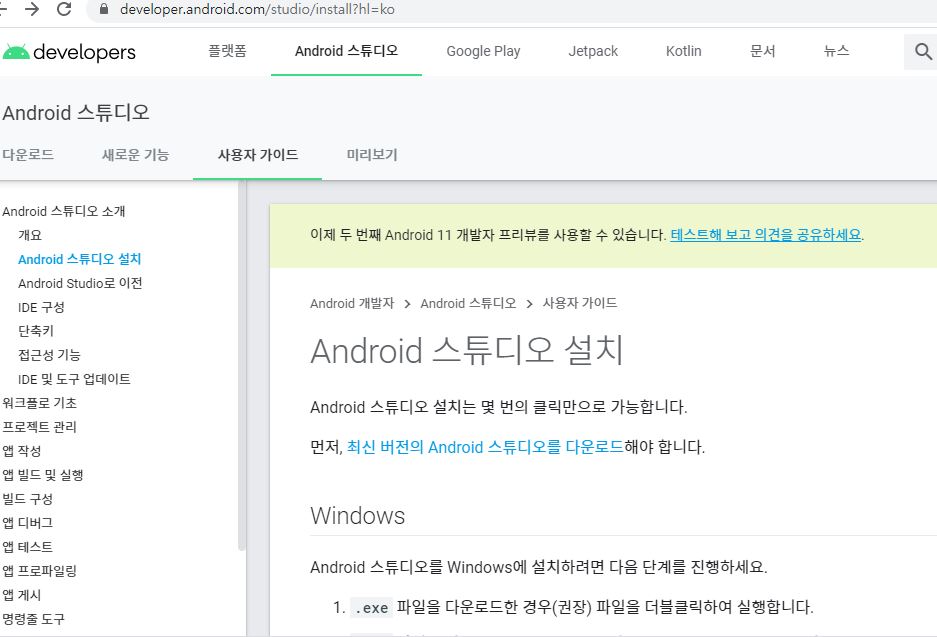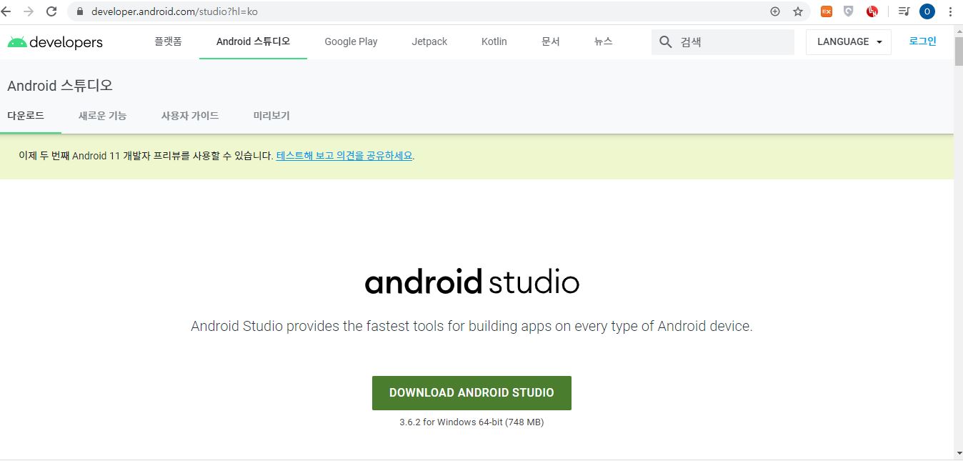 안드로이드 어플을 만들 것이니 안드로이드 스튜디오를 설치해보도록 하자.