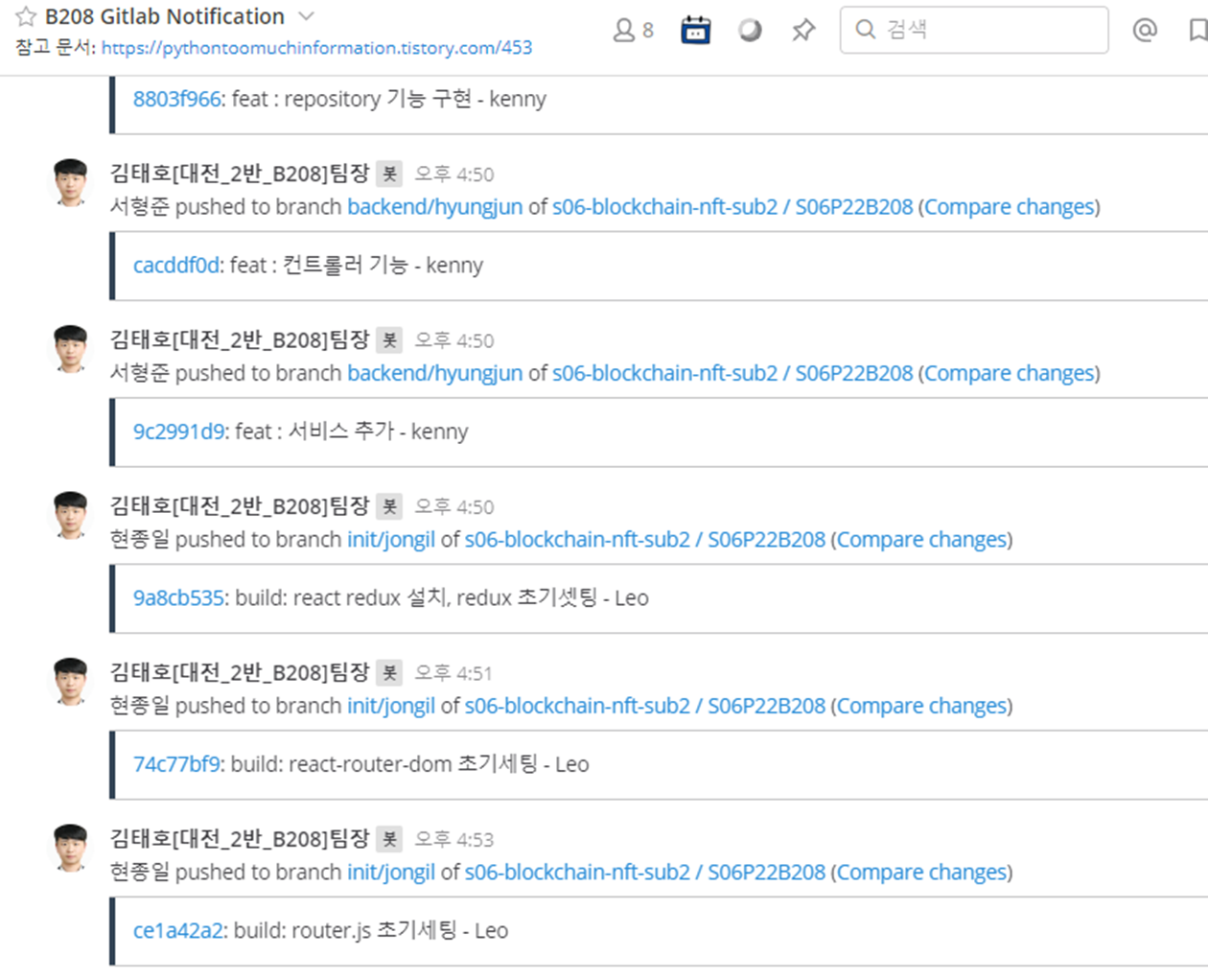 이전 프로젝트할 때 팀원들은 조용하고 말이 없는 편이라서, 작업 컨텍스트가 실시간으로 공유가 안되는 경우가 많았다.