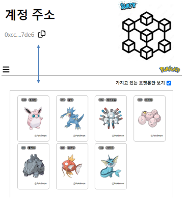 싸피 블록체인 네트워크에 해당 포켓몬 이미지와 메타데이터가 민팅된다.