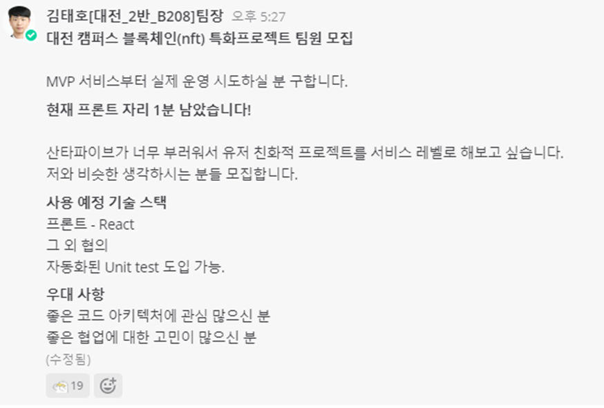 그래서 이런 모집 공고를 올렸다.