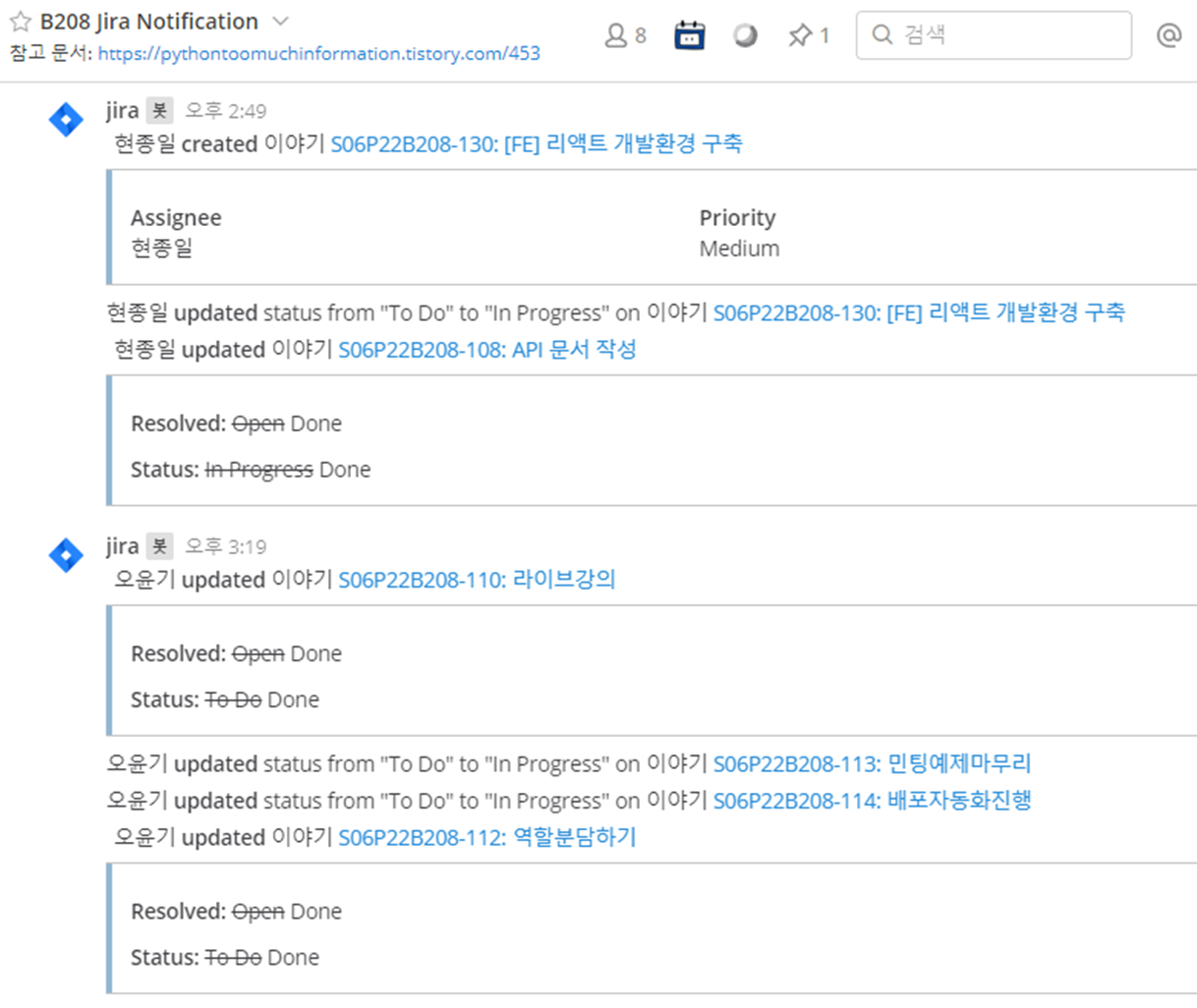 그 점을 개선하려고 Mattermost, JIRA를 적극적으로 활용했다.