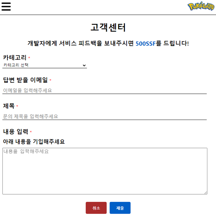 고객센터에 리뷰나 건의사항을 써서 제출하면 우리 팀 이메일로 오게 했다.