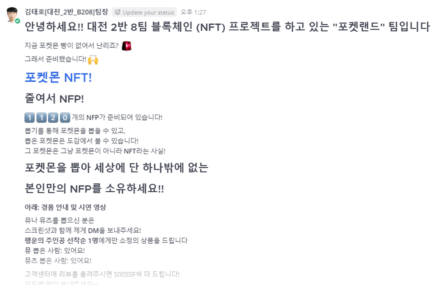무엇보다 공지를 올리자 마자 뮤와 뮤츠를 뽑았다는 DM이 와서 팀원 전체가 놀랐었다.