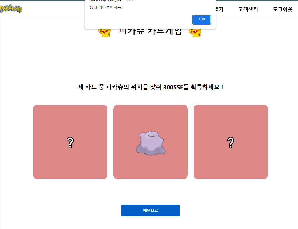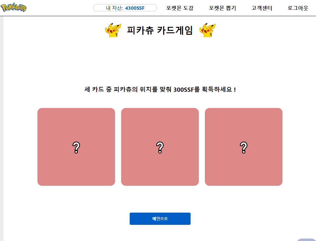 피카츄의 위치를 맞춰 코인을 버는 미니 게임