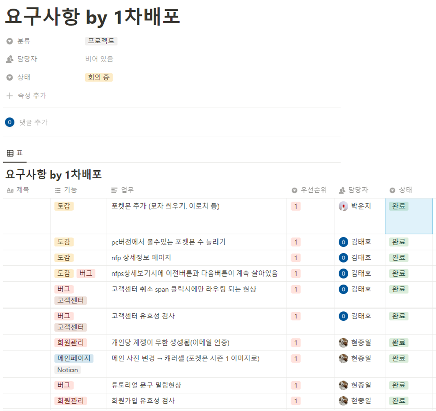 그 피드백을 취합해서 다음과 같이 업무 목록을 만들고