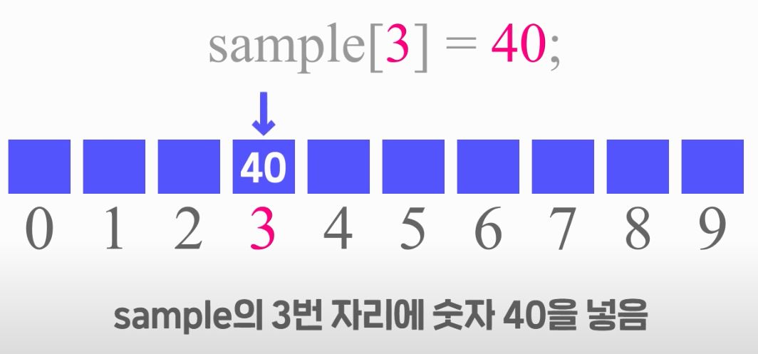 sample[3] = 40; 이라면 아래 사진과 같다.